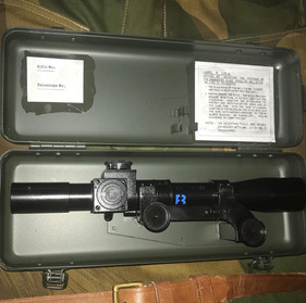 Collecting British Sniper gear can be fun and fulfilling. Also a little bewildering at first if your new to the subject matter, the Brits have a lot of special terminology. There are 4 or so major levels of kit definition and collecting interests that I would roughly describe as: The base rifle and sights, The Transport Chest contents, The basic Sniper field gear and then finally the complete Sniper field gear.