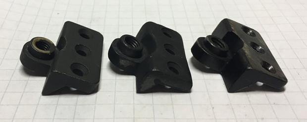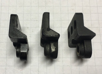 In this photo, the real front pad (Bottom) is compared to a Malaysian reproduction (Top) and a Canadian production item commissioned by a retired armorer (Middle).